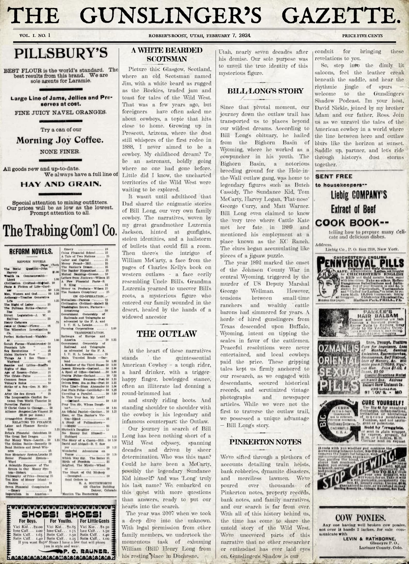 We've sifted through a plethora of accounts detailing train heists, bank robberies, dynamite disasters, and merciless lawmen. We've poured over thousands of Pinkerton notes, property records, bank notes, and family narratives, and our search is far from over. With all of this history behind us, the time has come to share the untold story of the Wild West. We've uncovered parts of this narrative that no other researcher or enthusiast has ever laid eyes on. Gunslinger's Shadow is our conduit for bringing these revelations to you.